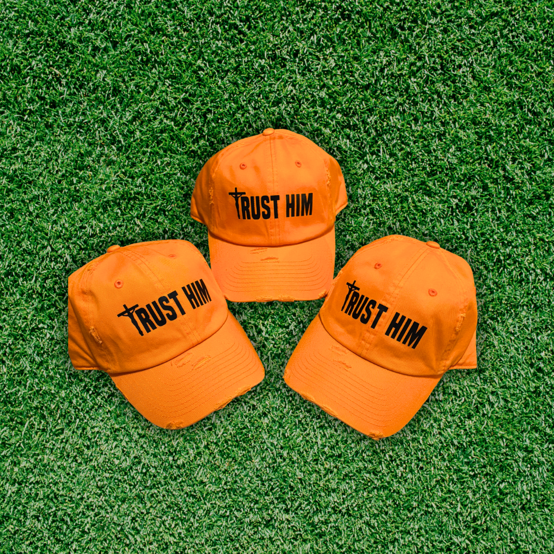 Comfortable fit distressed hat with "Trust Him" logo centered on the front. In every situation "Trust Him".